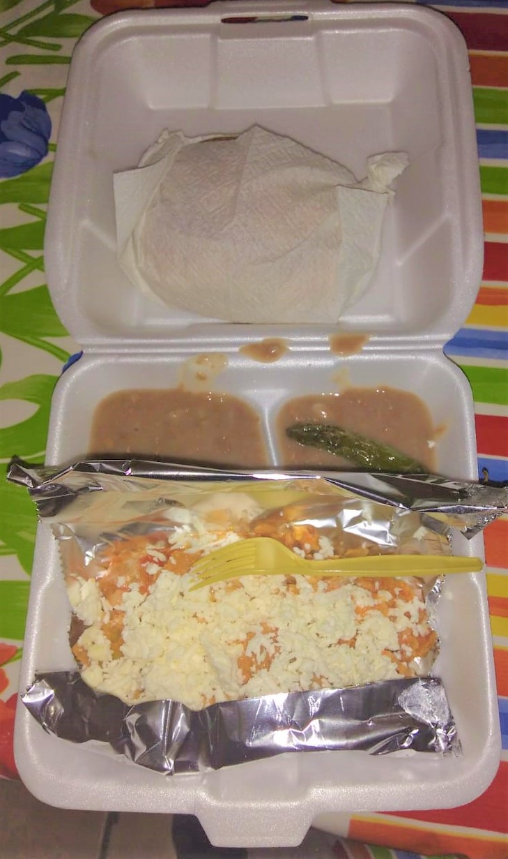 Deliciosos Chilaquiles con crema, queso, frijoles y con complemento a escoger máx 1 tortillas, bolillo, incluye salsa.