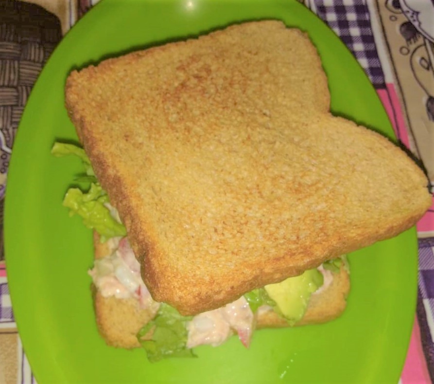 Delicioso sándwich de ensalada de atún a la mexicana con lechuga, jitomate, cebolla y aguacate.
