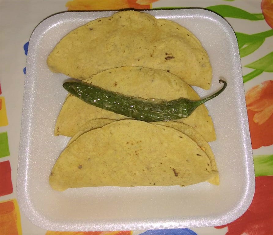 Delicioso taquito en tortilla de maíz relleno de guiso a escoger, máx 1 ( chicharrón, chueta, huevo rojo, huevo verde, nopales, frijoles con queso.