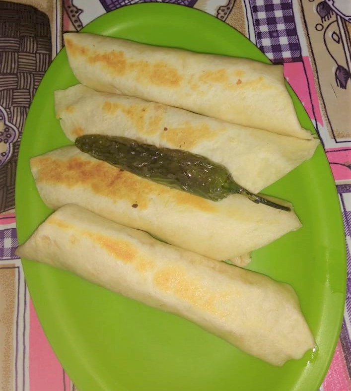 Delicioso burrito en tortilla de harina relleno del guiso a escoger máx 1 (chicharrón, chuleta, huevo rojo, huevo verde, nopales, frijoles con queso.