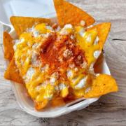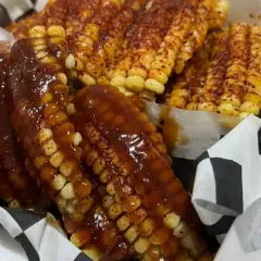 Elote frito preparado con mayonesa, crema, queso amarillo, queso blanco, chile
