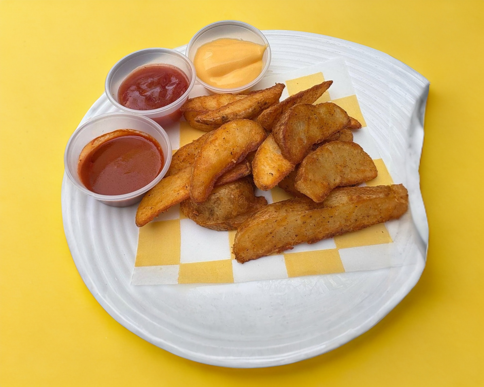 Papas gajo acompañadas con salsa de tomate