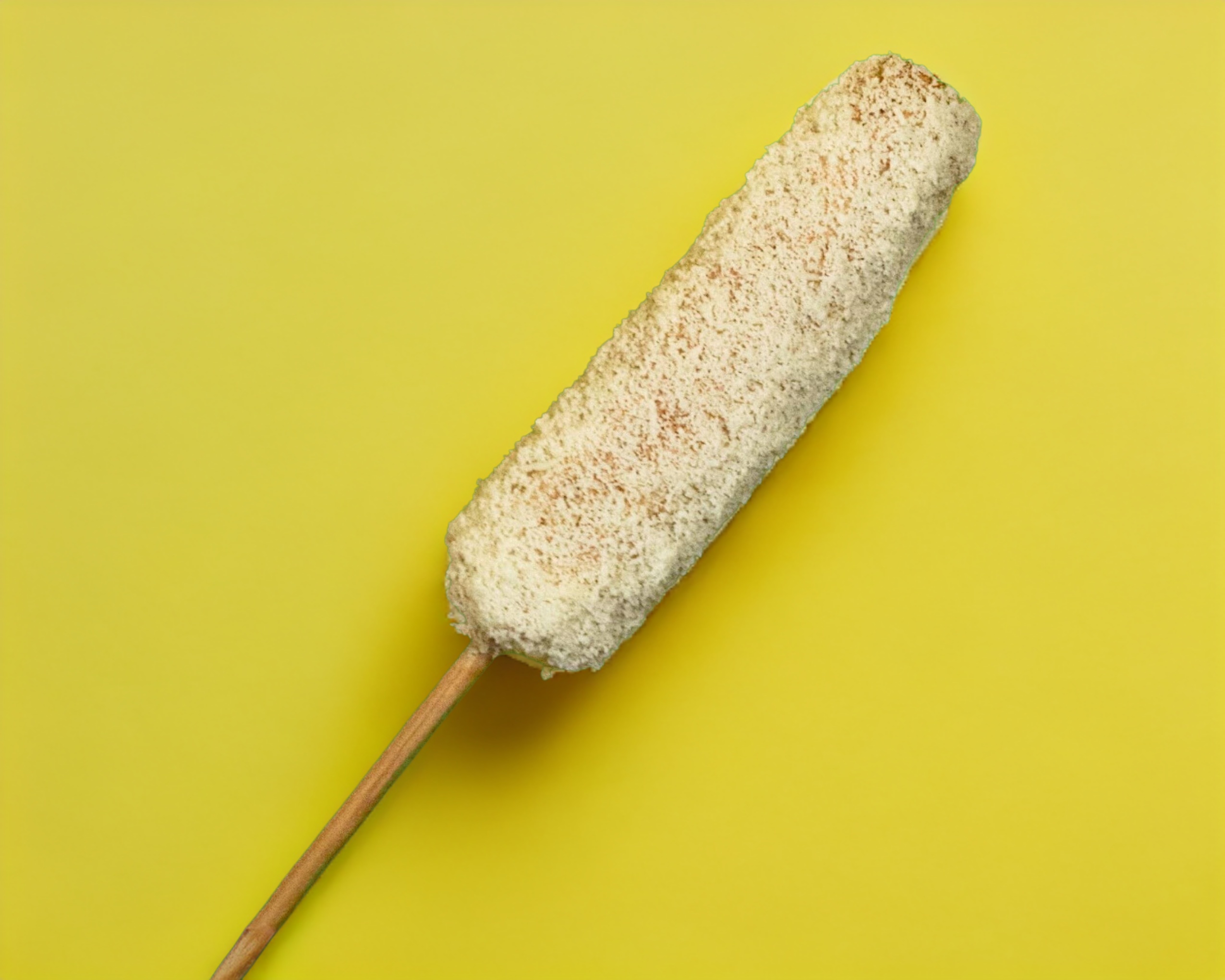 Elote empanizado con sabritas a tu elección, queso blanco y queso amarillo.