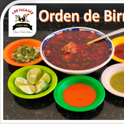 Exquisita Birria estilo Jalisco, Jugosa y con carne de la mejor calidad, preparada con la receta de los Tucanes, incluye verdura,limones y salsas.😋