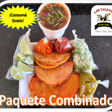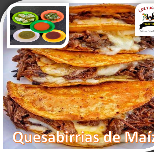 Incluye 3 Tacos Dorados o Suaves y 2 Quesabirrias + 1 Consomé Chico Gratis!!. Acompañado con Verduras, Salsas y Limones.