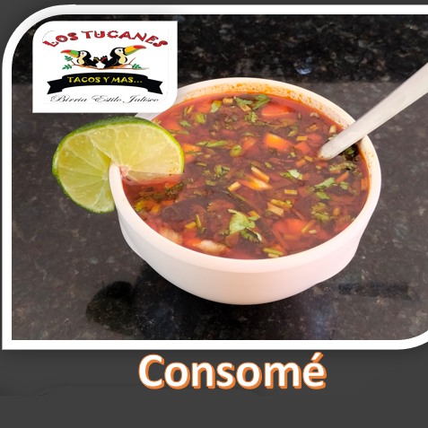 Delicioso consomé preparado con la receta secreta de los Tucanes, servido con o sin garbanzo para ese toque especial en el sabor!