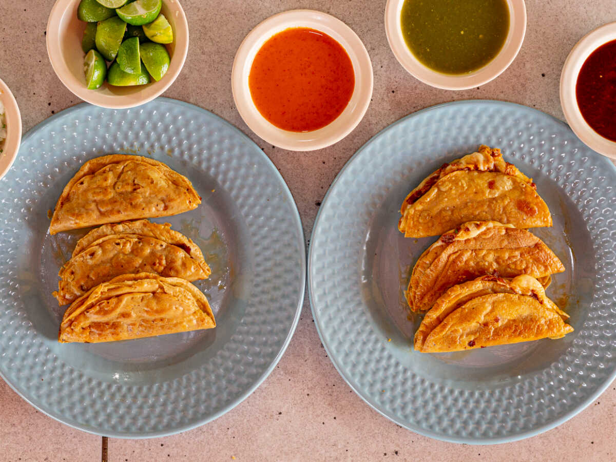 1 Deliciosa quesadilla de harina, se incluyen verdura, limones y salsa.