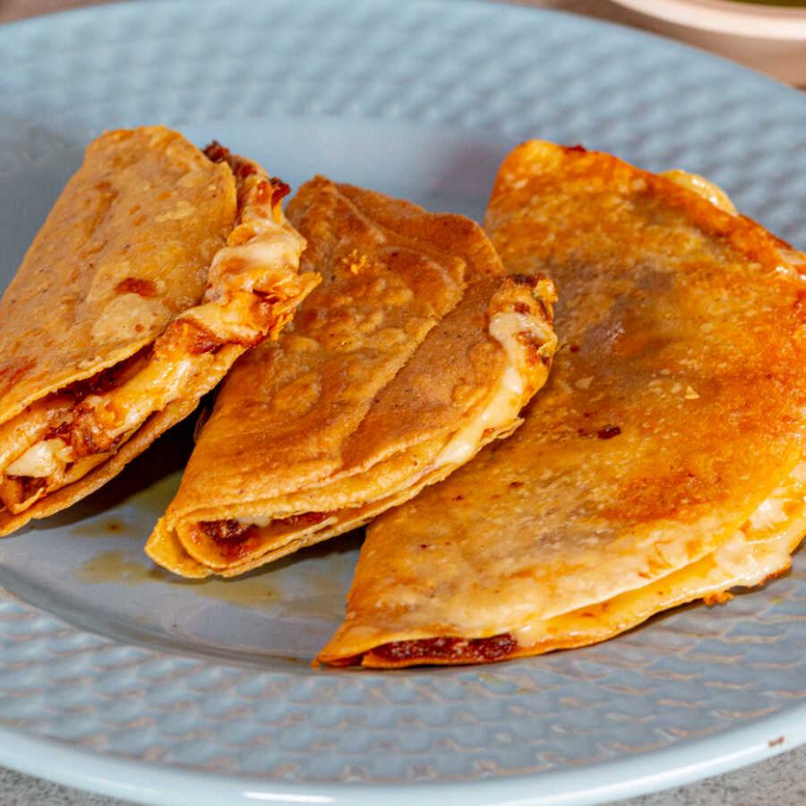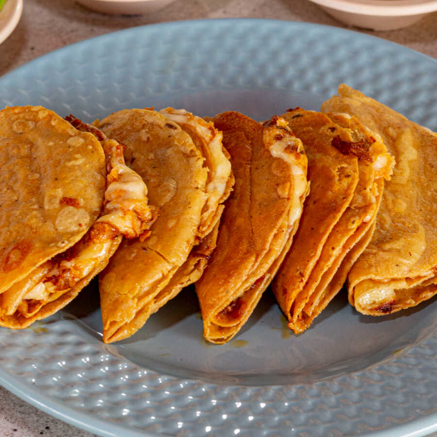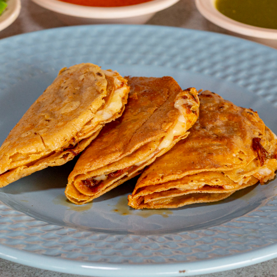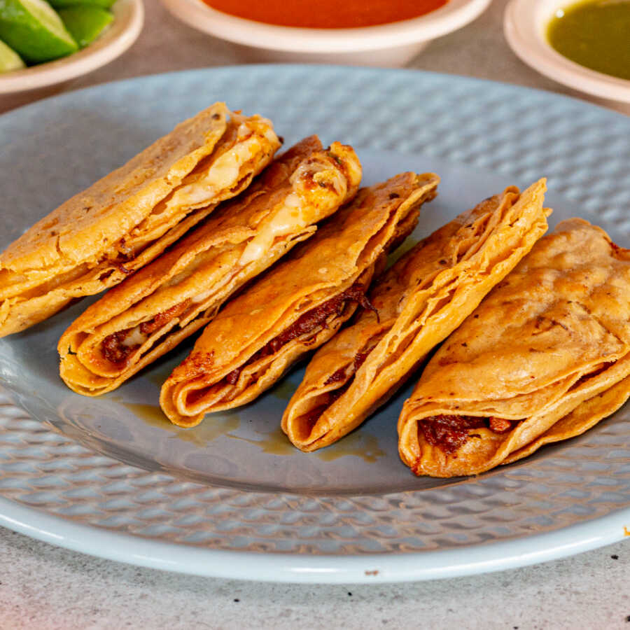 1 Deliciosa quesabirria con tortilla de harina rellena de carne (55 g aprox) de res y queso fundido.
