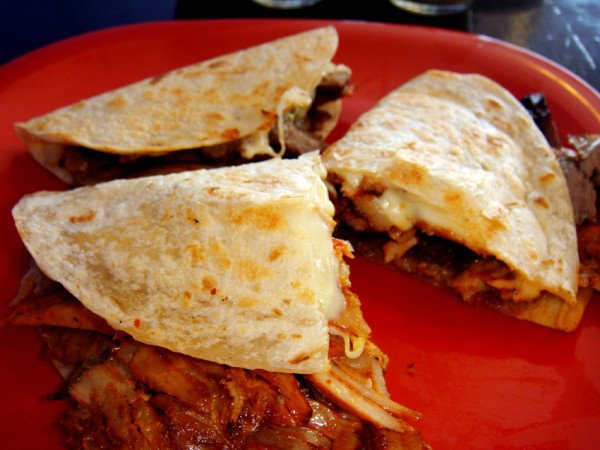 Deliciosa gringa de bistec de puerco acompañada de verdura, limones y salsas