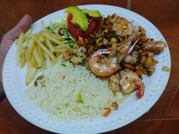 Camarones preparados con ajo y pimienta.