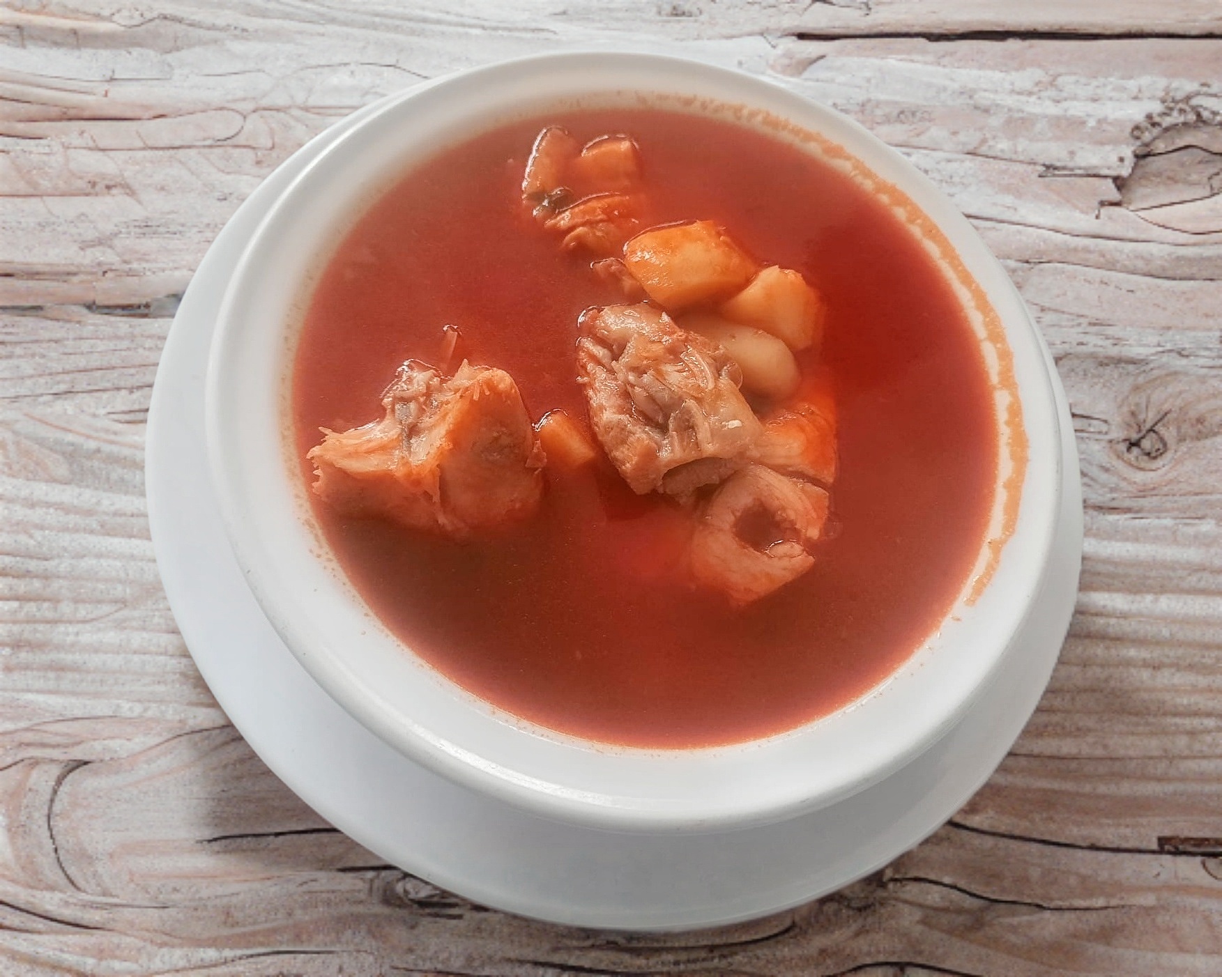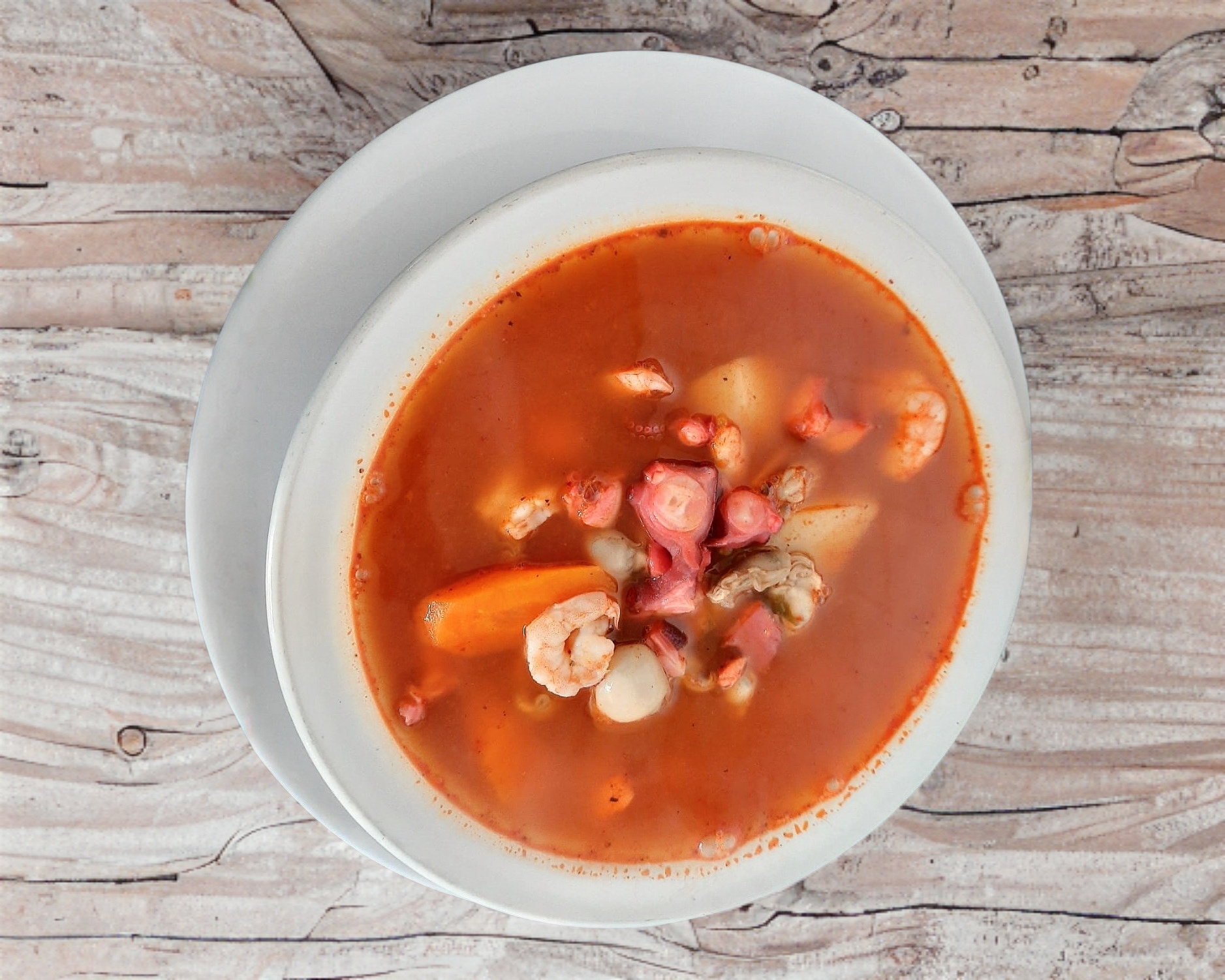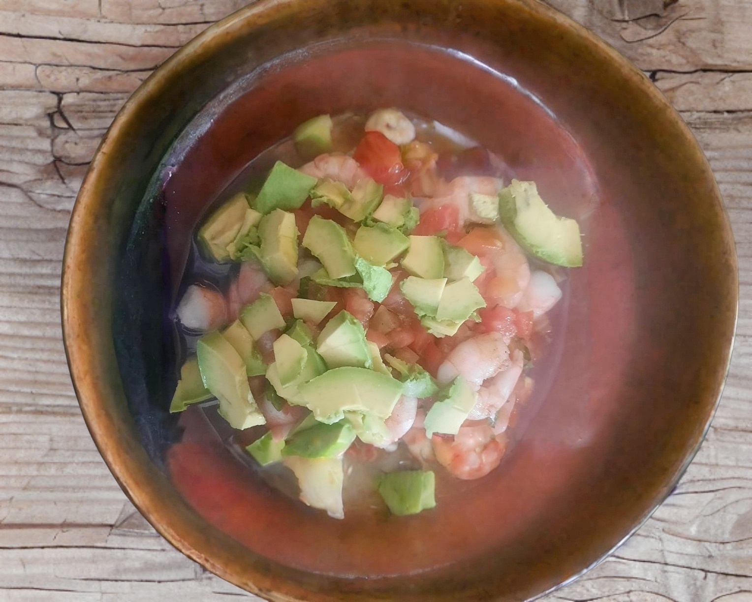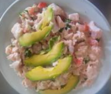 Preparado con jitomate, cilantro y mayonesa. Se sirve con tostadas, totopos, aguacate y salsa.