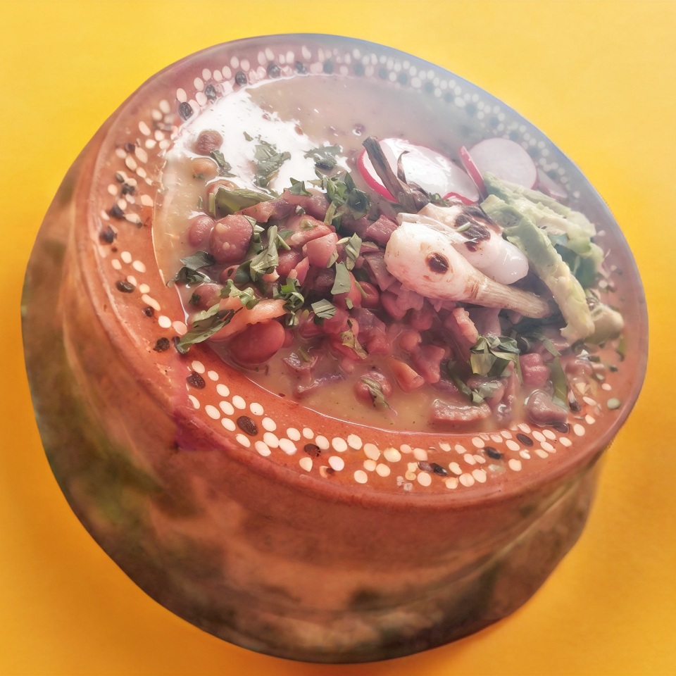 1 LT de menudo, salsas, verdura, 5 tortillas echas a mano