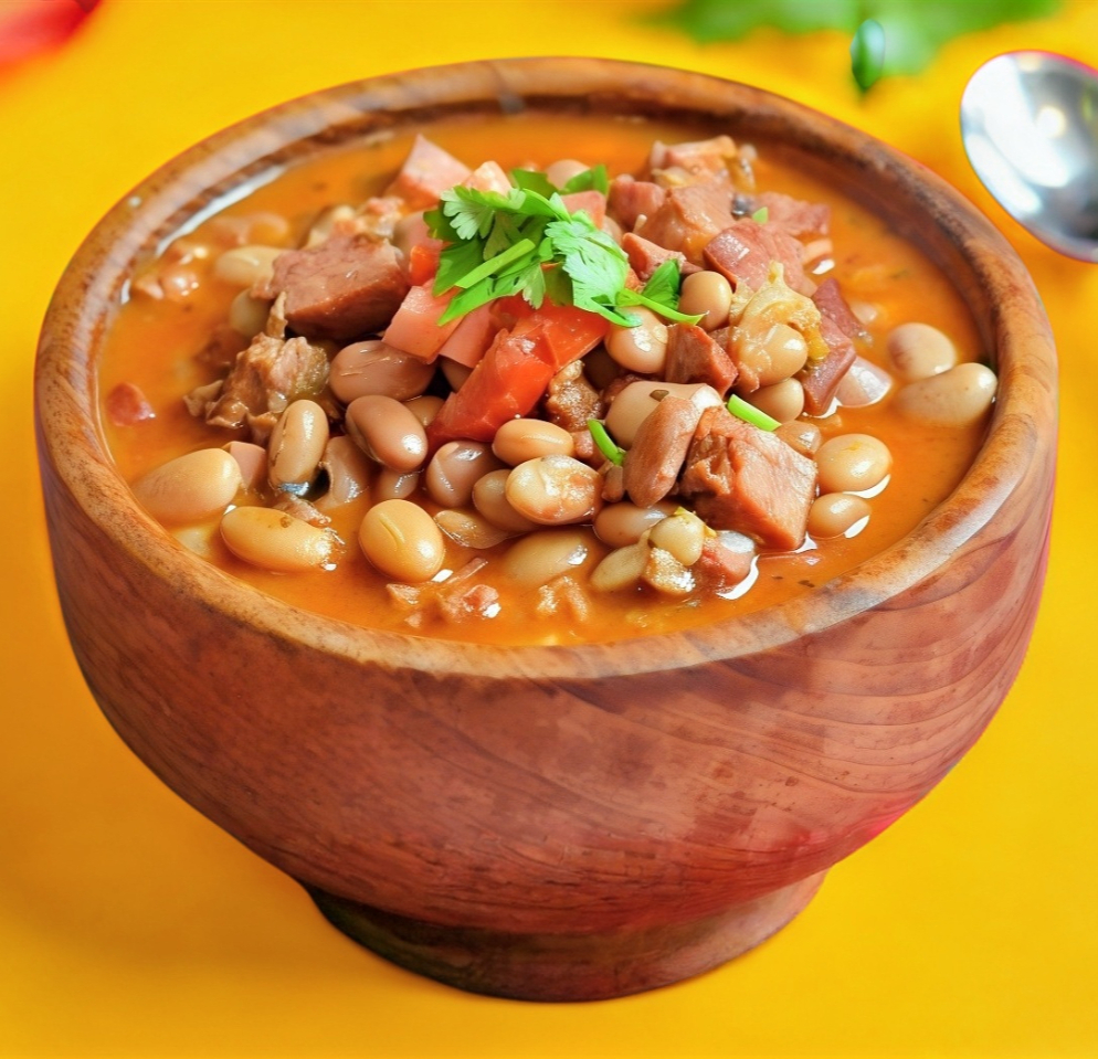 Frijoles negros en bola, salchicha, jamon, tocino y chorizo