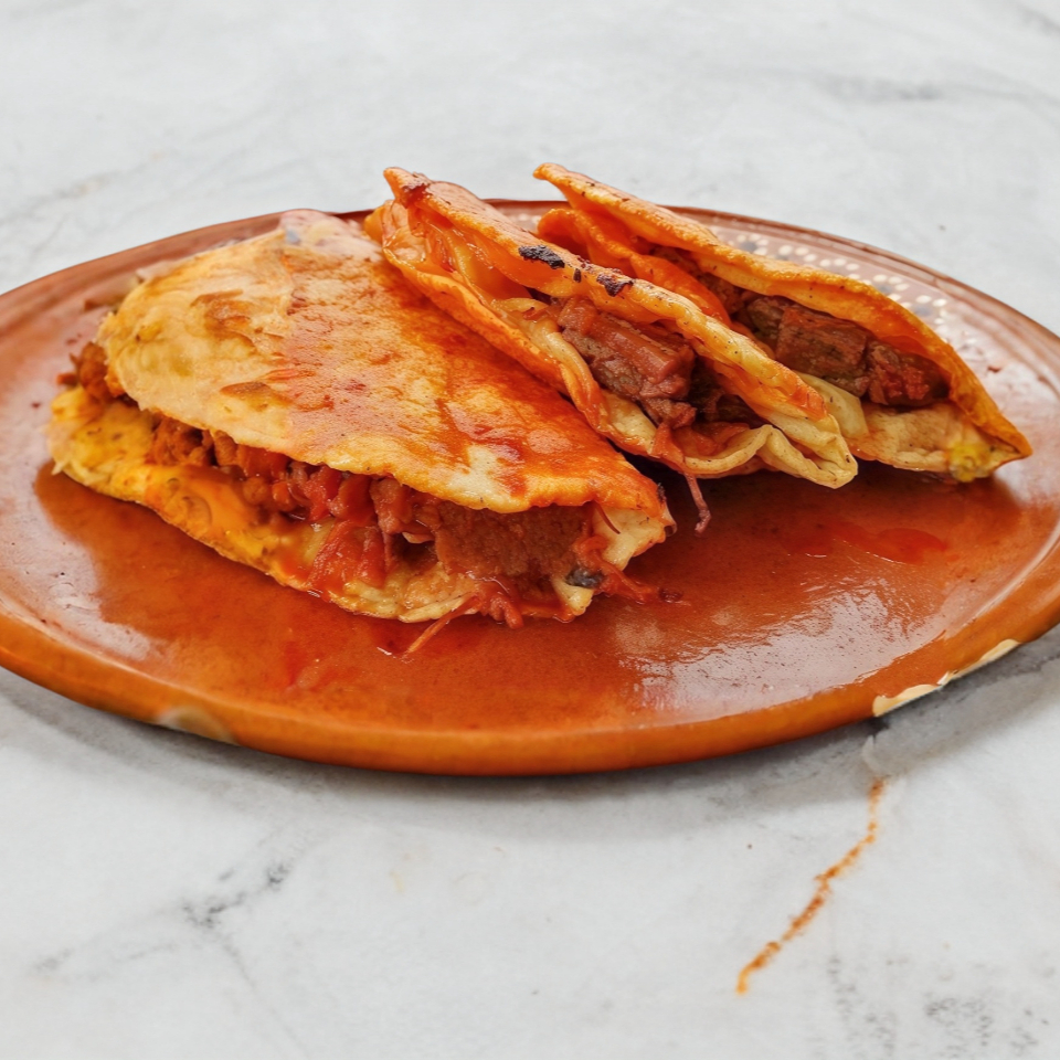 Tortilla taquera de maiz rellena de birria y queso