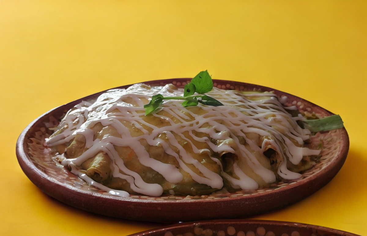 5 enchiladas en salsa de tomatillo rellenas de pollo