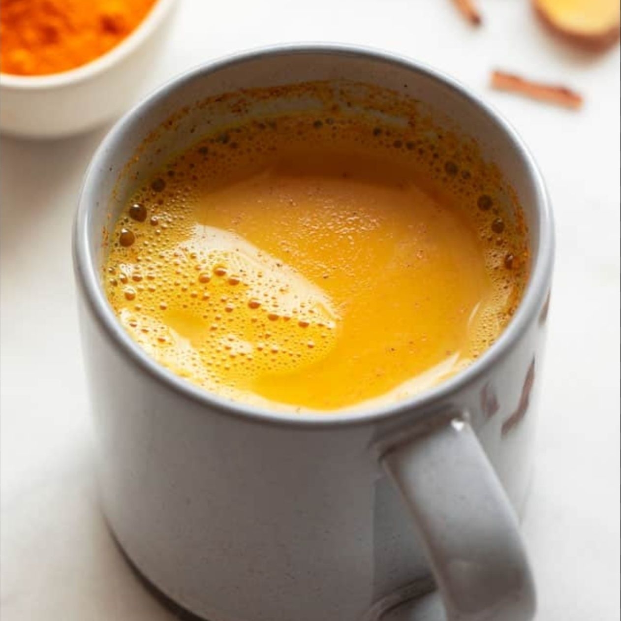 Leche caliente con cúrcuma, acompañada de otras especias como pimienta negra, jengibre y canela