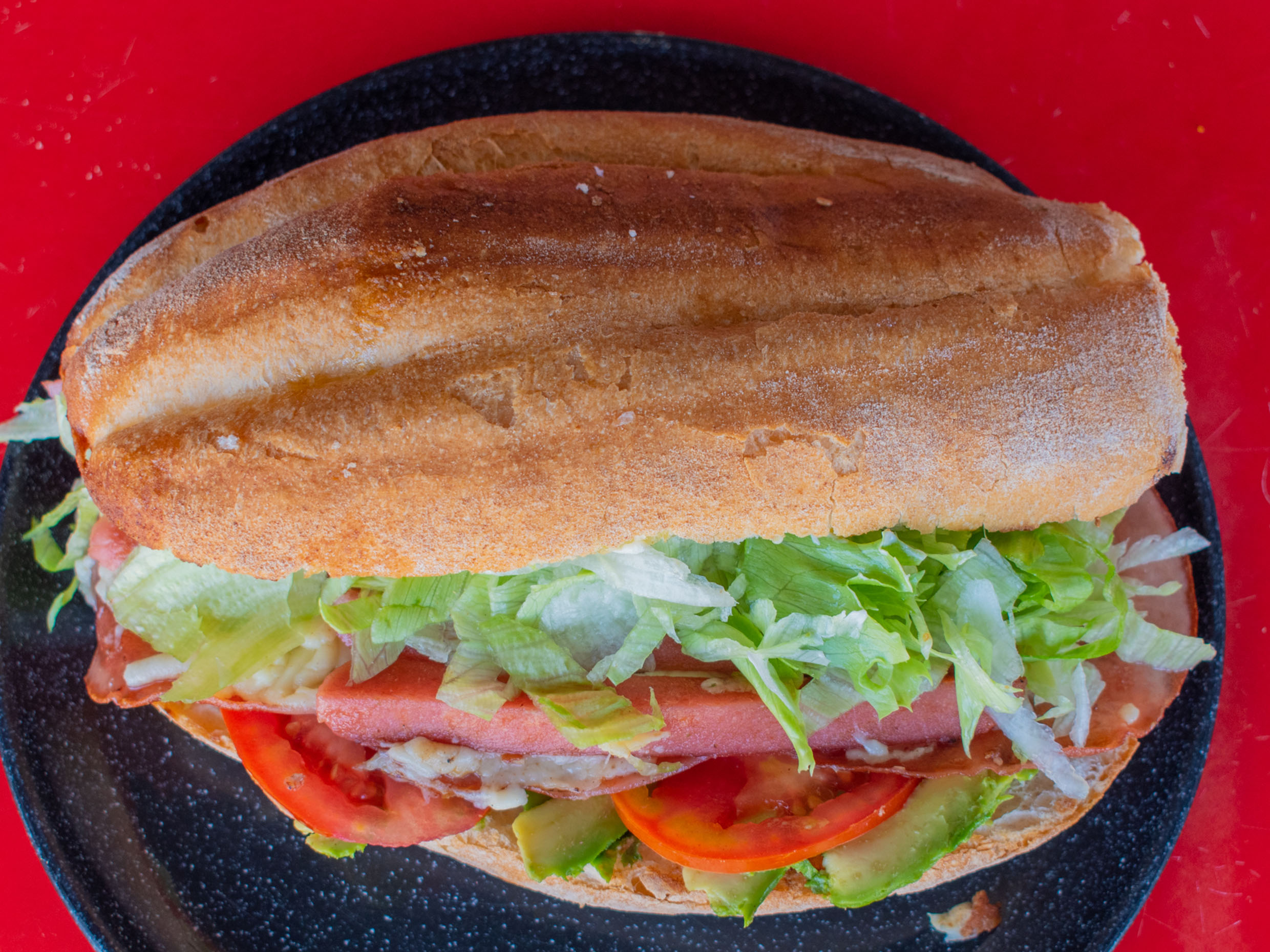 (Jamón, queso amarillo y asadero, verdura, mayonesa, mostaza y catsup)