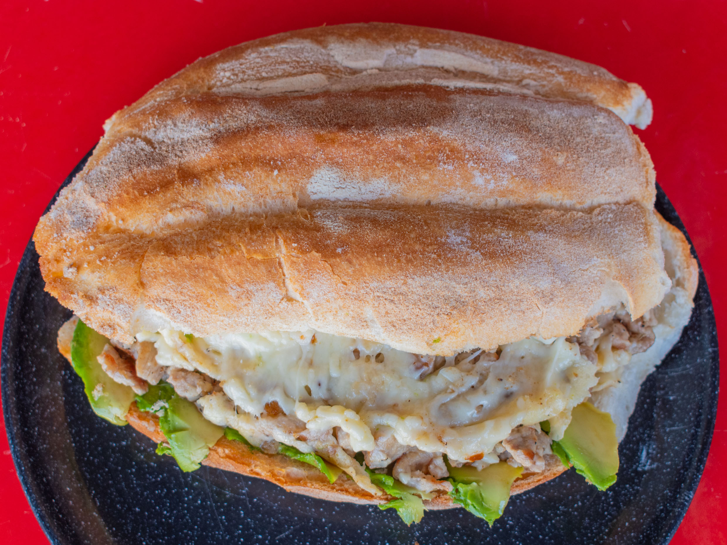 Jugosa salchicha de asar, queso manchego, aguacate, mayonesa y deliciosa carne 100 % arrachera 150 g. Acompañadas de lechuga, jitomate, mayonesa, mostaza y cátsup.