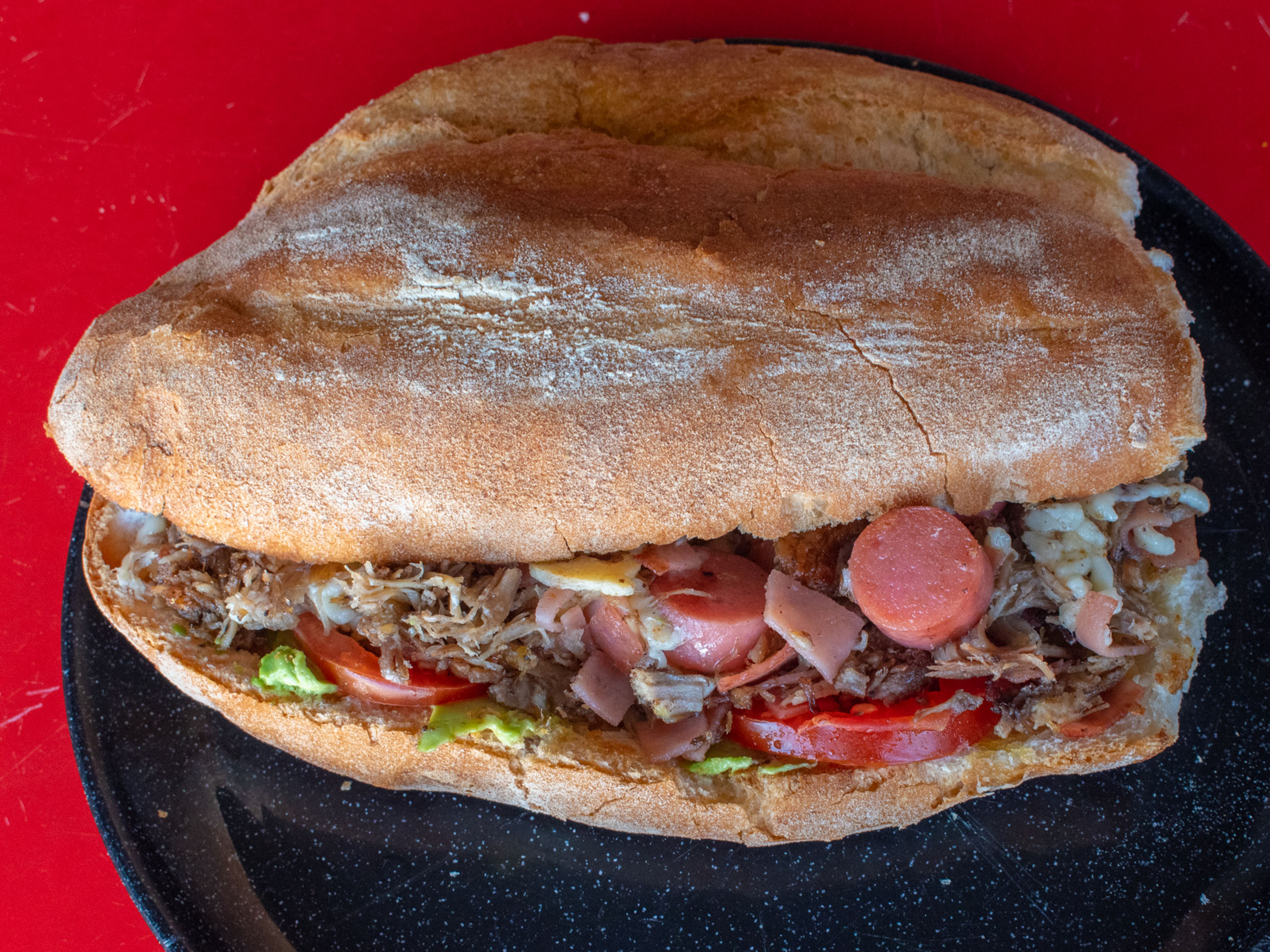 (Jamón, ambos quesos, milanesa, salchicha, tocino y mas queso asadero)