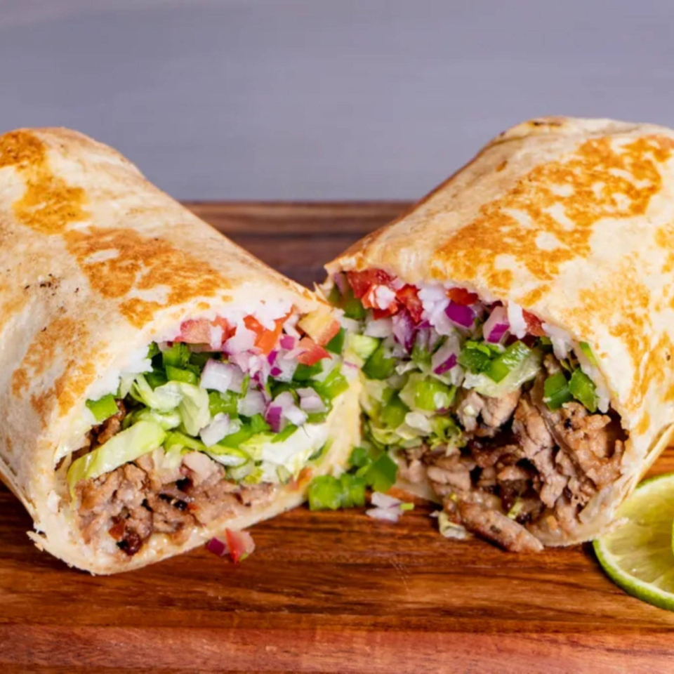 Burrito gigante en tortilla de harina. Lleva frijolitos sazonados, pico de gallo, aguacate y proteína a elegir.