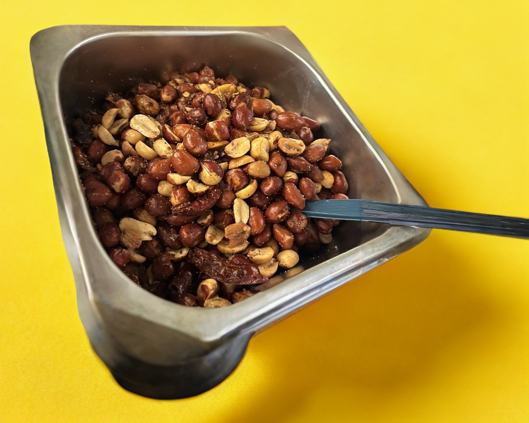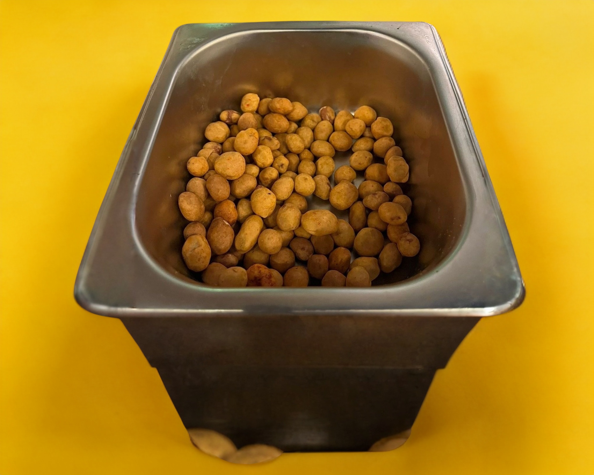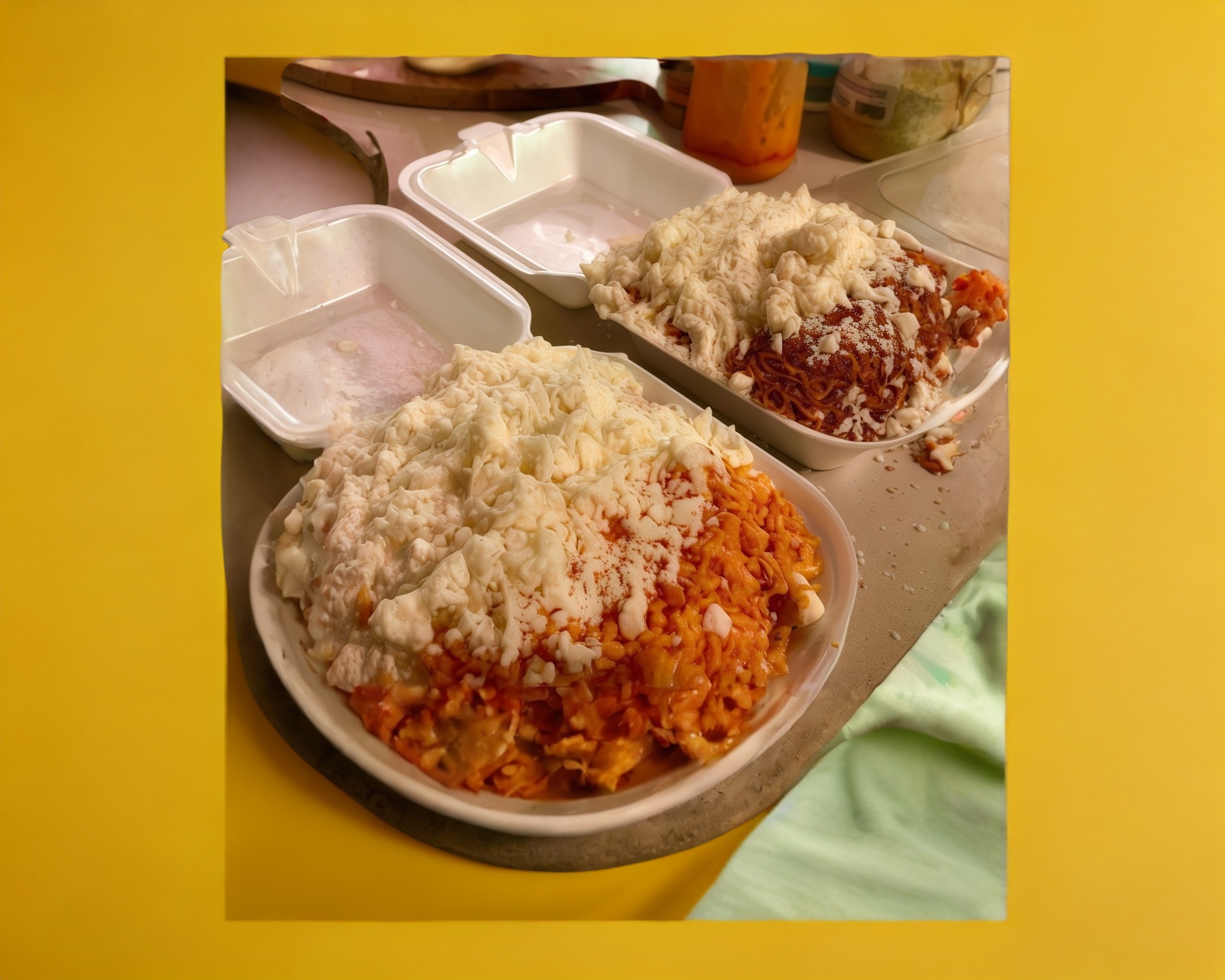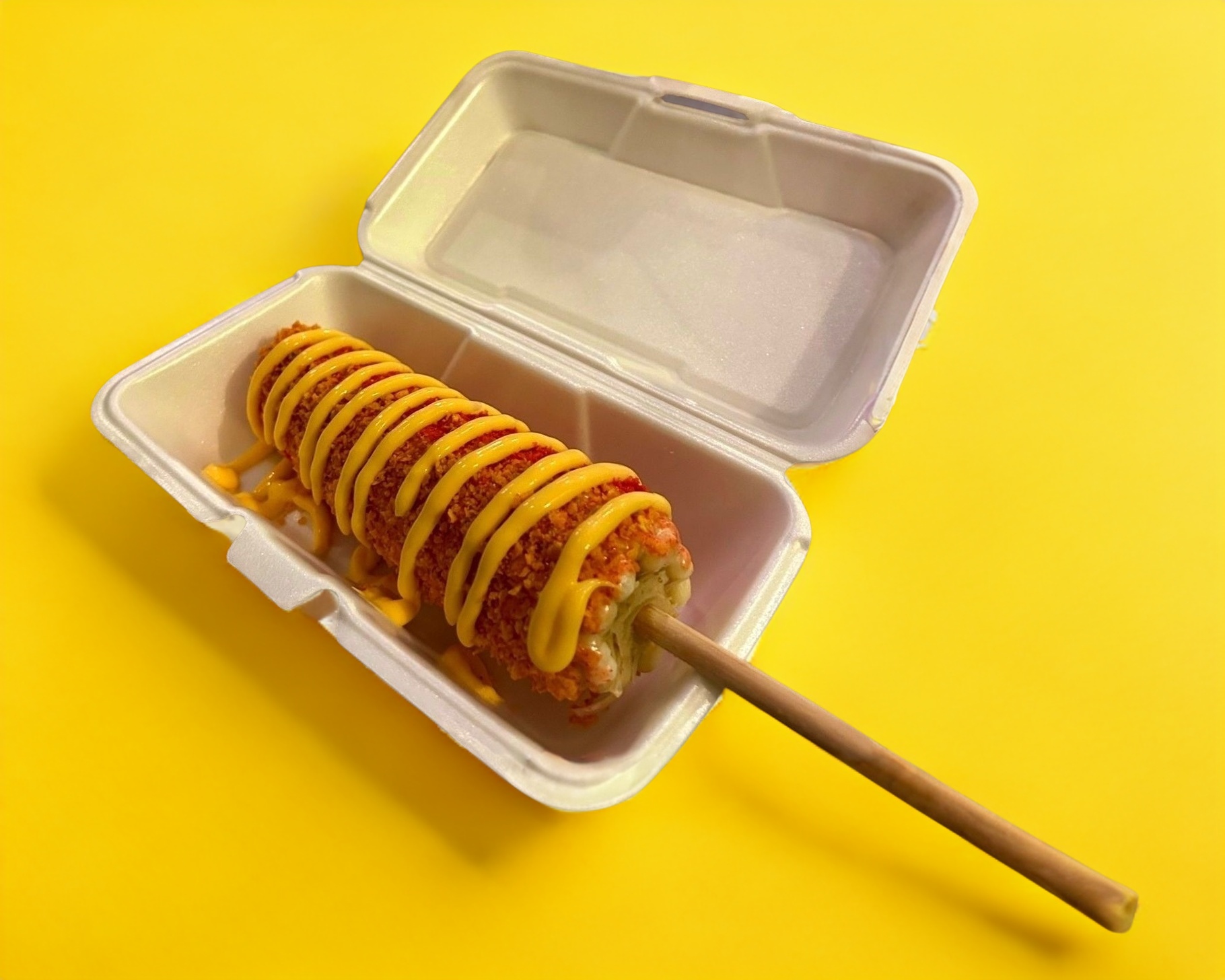 Un elote entero más medía mitad de elote, dorado con mantequilla, más elote desgranado y preparado a tu elección