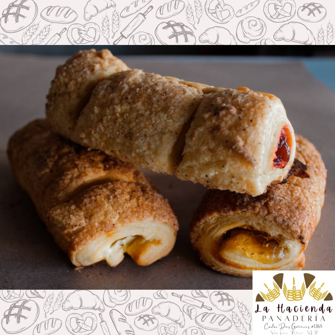 Pan hecho a base de hojaldre y relleno de mermelada de piña