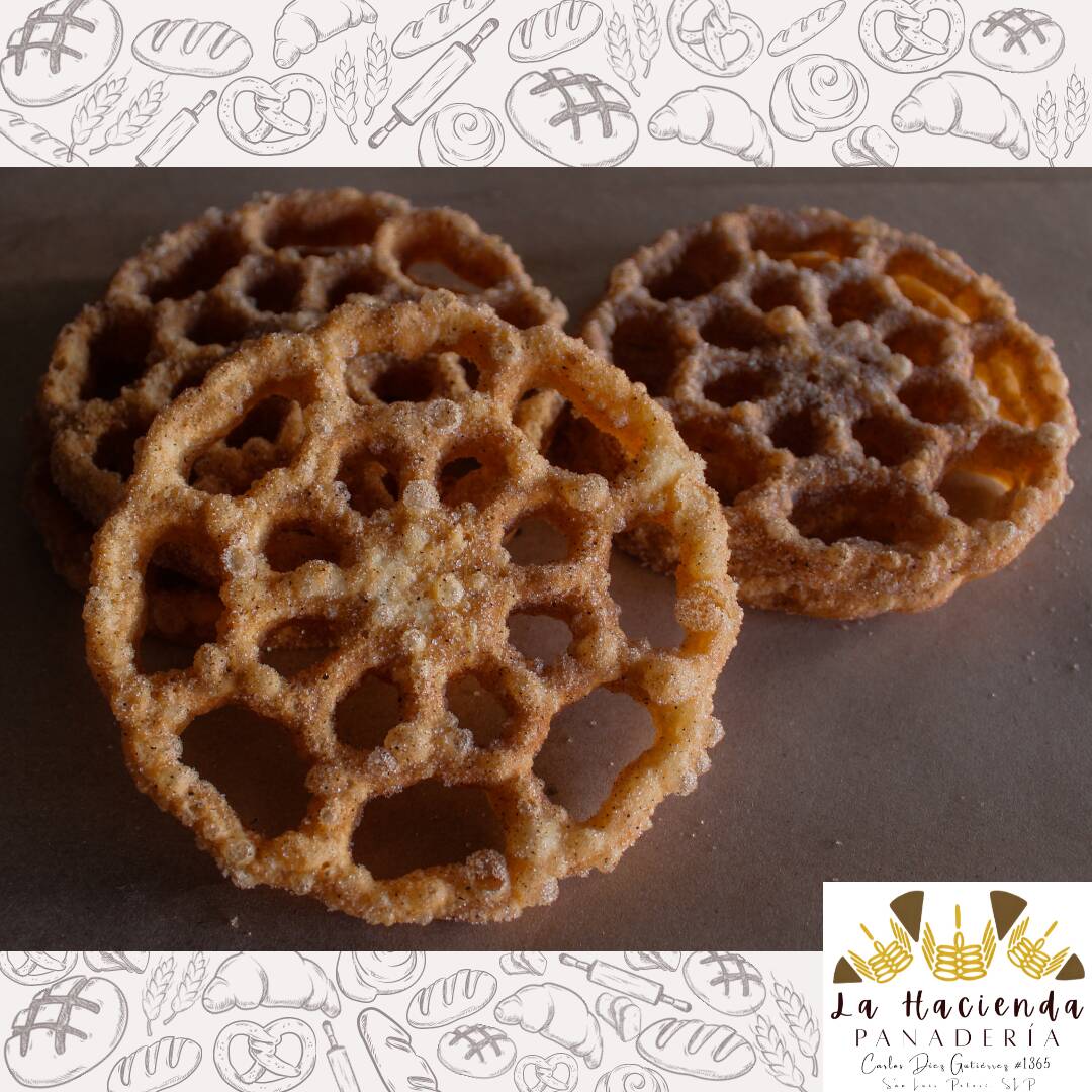 Postre crujiente, a base de harina de trigo, dulce, cubierto con canela y azúcar