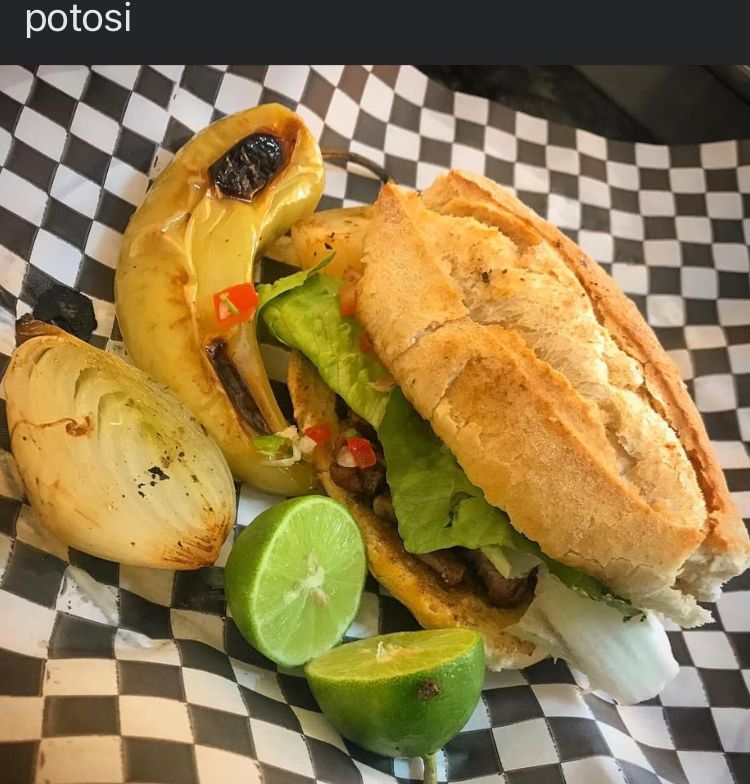 Carne de res, queso amarillo, jamón, lechuga, jitomate, cebolla, cátsup, mostaza, mayonesa y jalapeño.