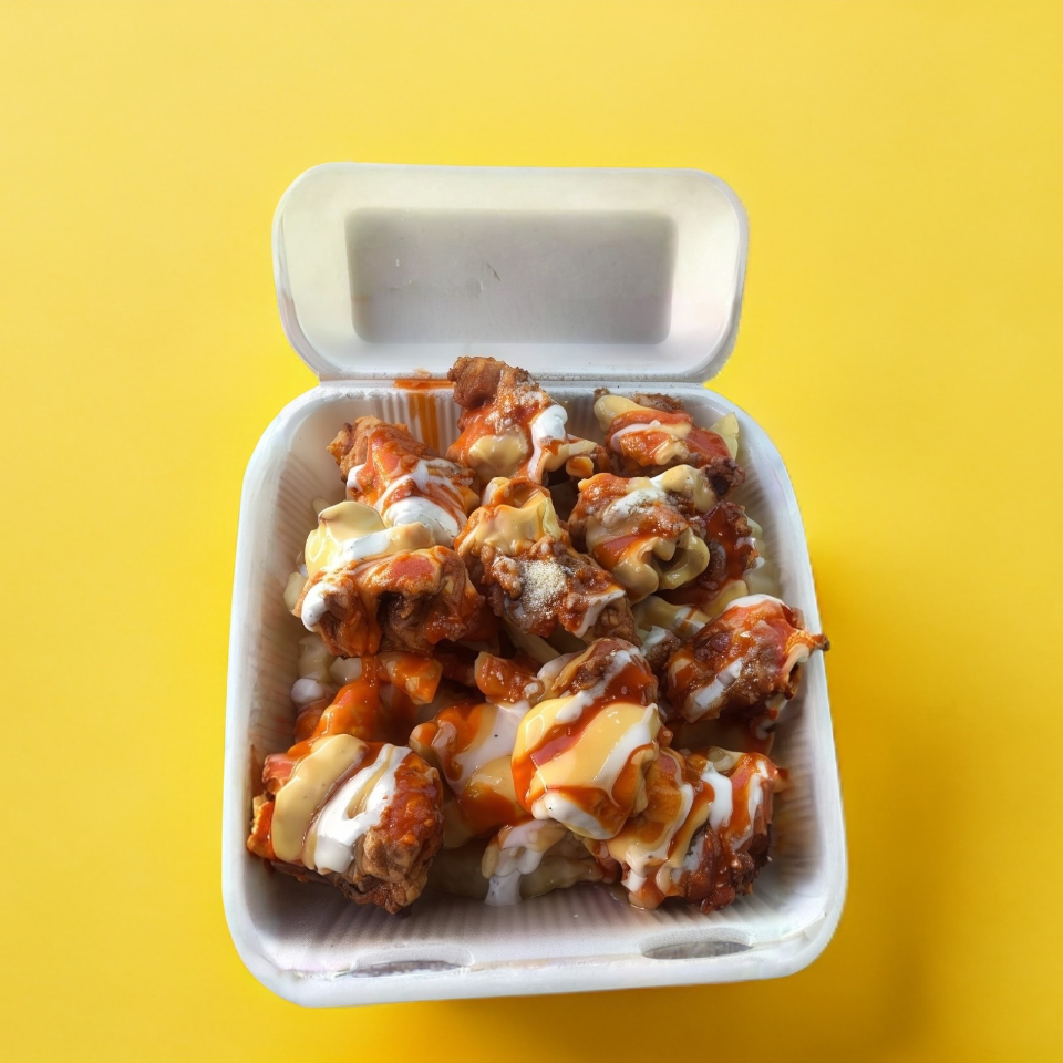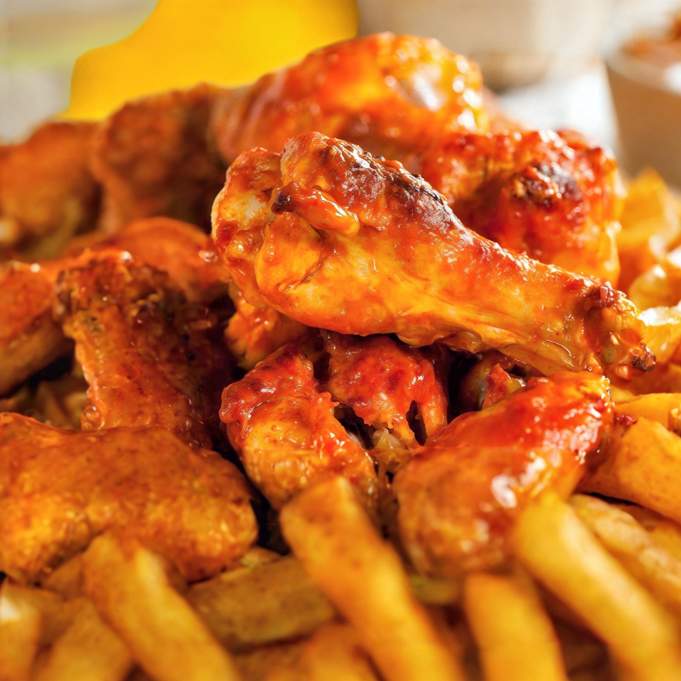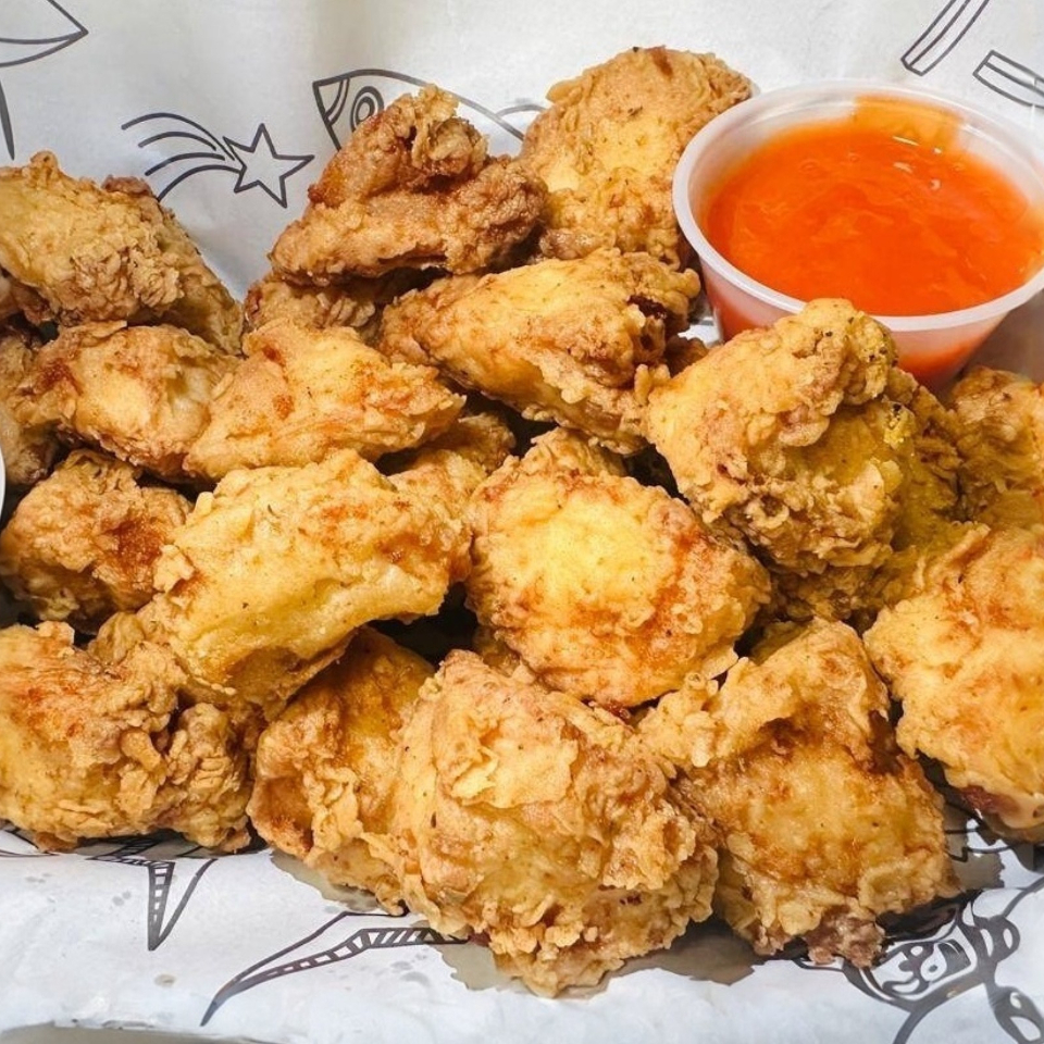 Boneless (aprox 50 piezas), 100% pechuga de pollo, bañados en la salsa de tu elección