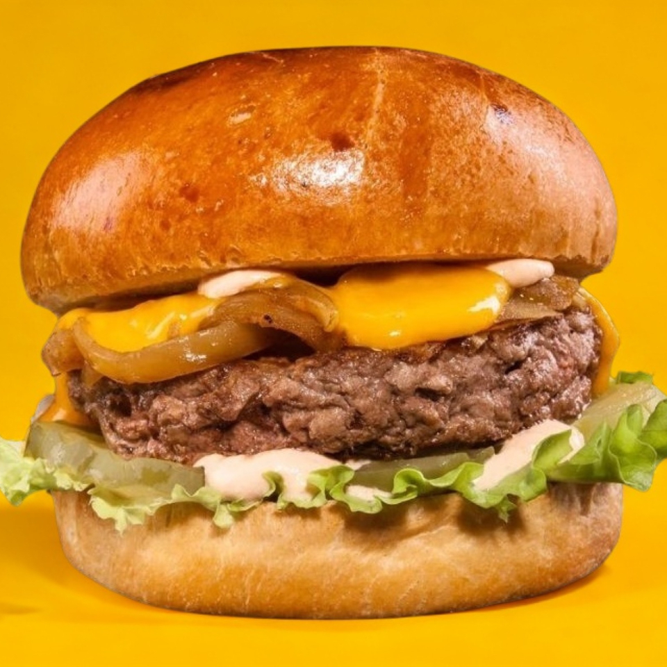1/4 libra carne de res, queso americano, queso monterrey jack y vegetales