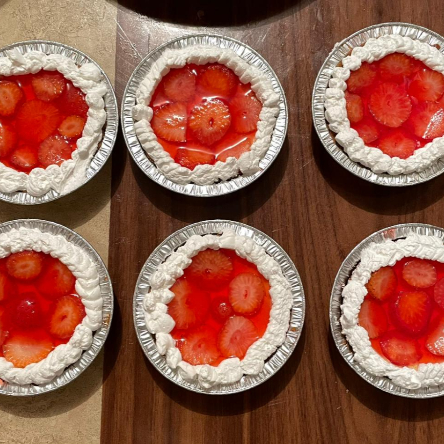 Pay de queso decorado con cubierta de fresa natural y chantilly