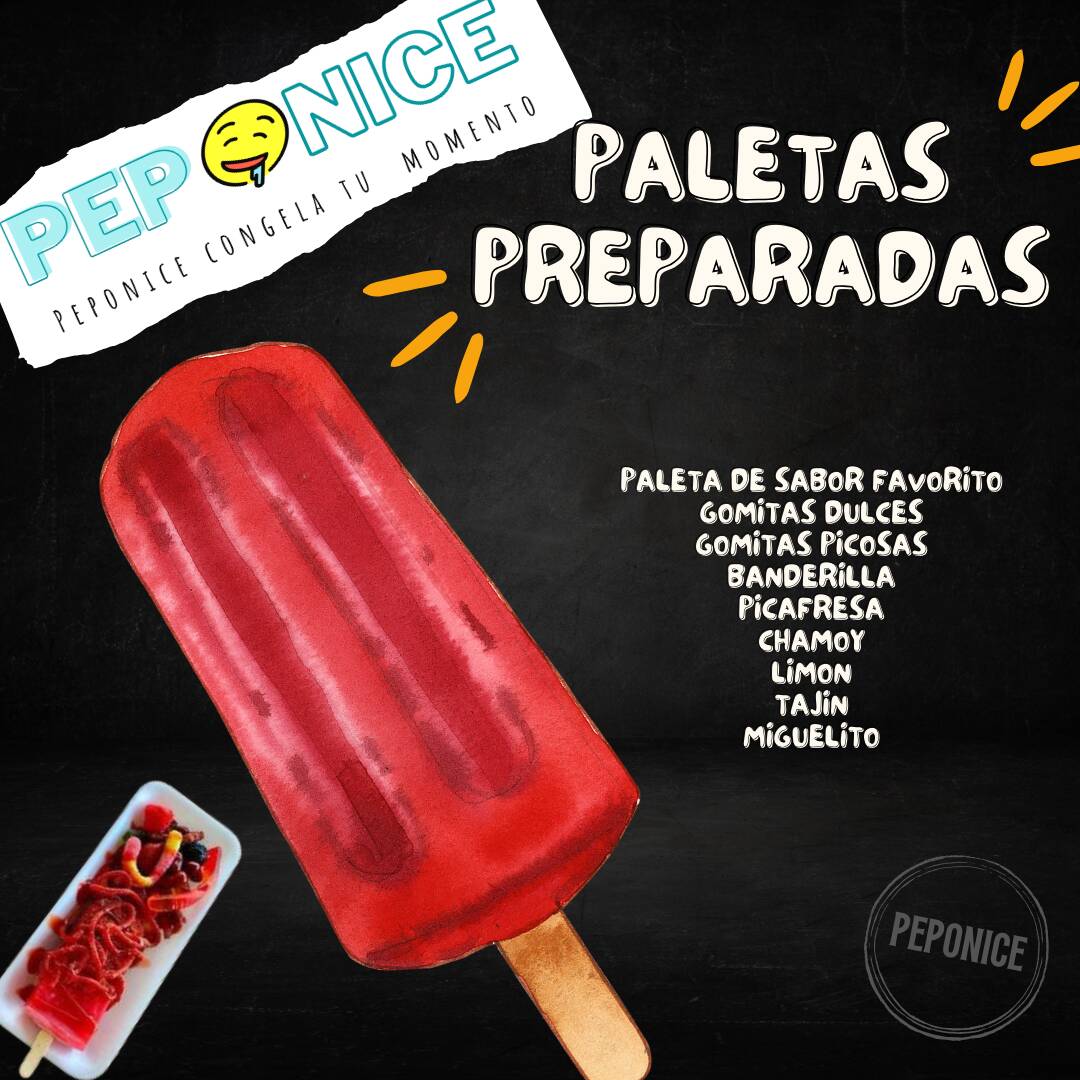 Disfruta de nuestras refrescantes paletas de hielo, elaboradas con auténtica fruta natural. Cada paleta está preparada con ingredientes frescos y seleccionados cuidadosamente para ofrecerte un sabor puro y refrescante. Disponibles en una variedad de sabores.