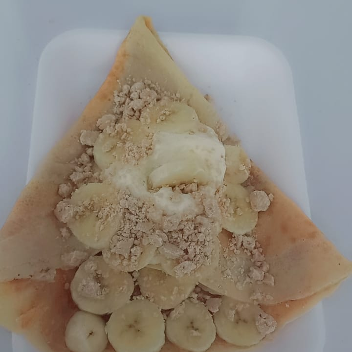Disfruta de una crepa única con nuestra Crepa Mazapanera, rellena de crema de maní, plátano fresco, crema batida y el irresistible sabor del mazapán original. Una combinación dulce y cremosa que deleitará tu paladar en cada bocado.