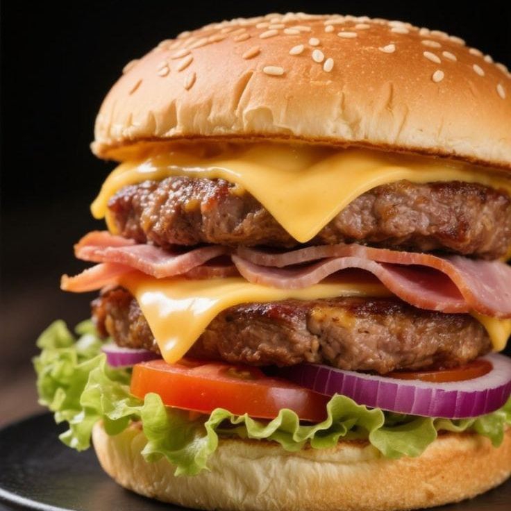 Doble carne sirloin acompañada de queso lechuga tomate cebolla y aderezos de la casa