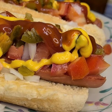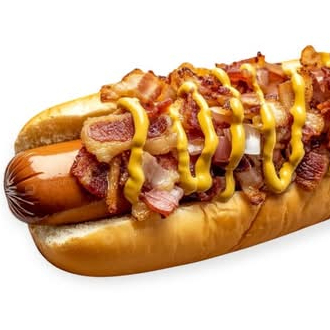 Pan jumbo, base mayonesa, guacamole y orégano, salchicha de pavo, tocino, acompañado de jitomate, cebolla, jalapeños.