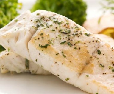 Filete de pescado frito en mantequilla acompañado de ensalada de repollo y arroz blanco.