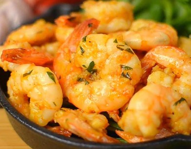 8 pzas de camarón frito en mantequilla con cebolla morada, zanahoria, crema y tequila. Acompañado de arroz blanco y aguacate.