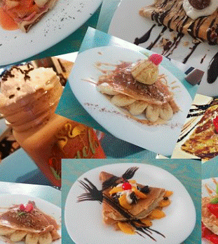 Crepa rellena de dulce de leche con nuez y helado de vainilla.