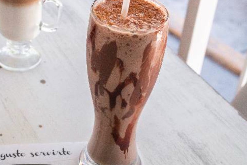 Crepa rellena de philadelphia con nuez, manzana horneada, bañada con cajeta y bailey's, acompañada con helado de vainilla.