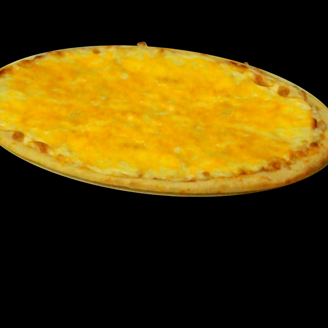 Preparada con cuatro quesos (mozzarella, cheddar, provolone y parmesano) de alta calidad. Pizza artesanal, de masa delgadita, grande, horneada al ladrillo refractario.