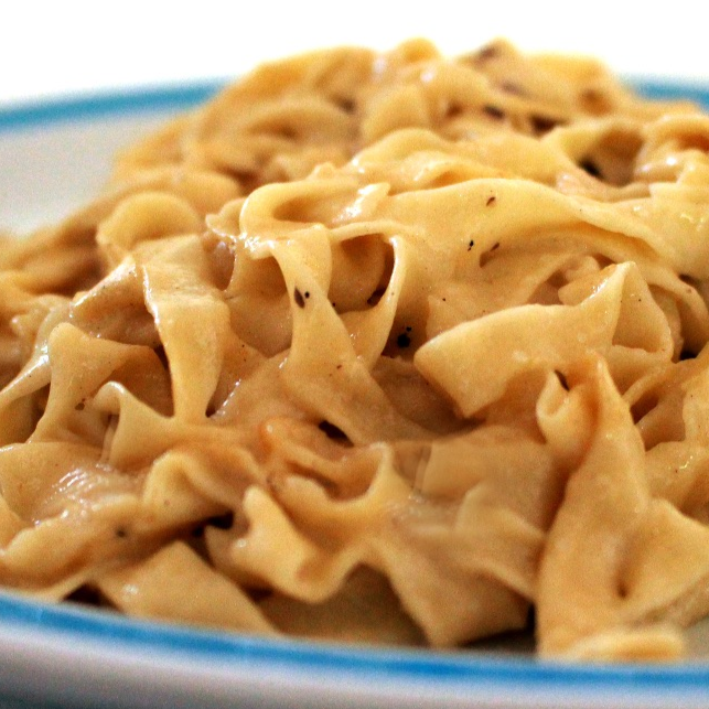 Pasta hecha a mano en salsa alfredo.