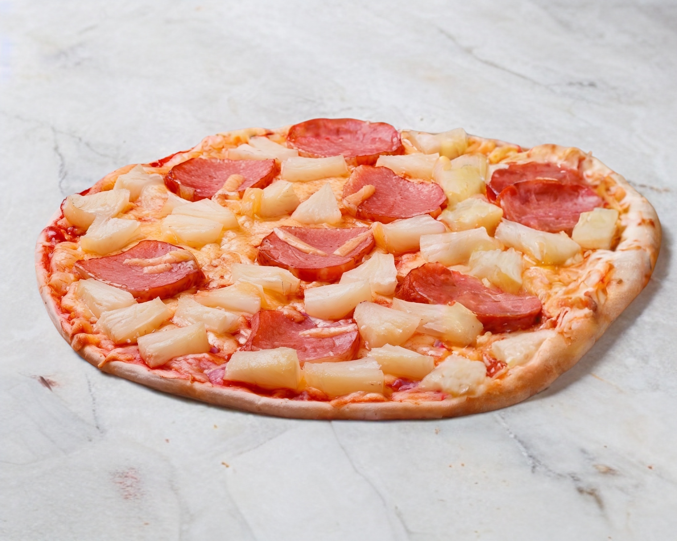 6’ pulgadas 100 grs de masa 100 grs de queso 10 grs de jamón 20 grs de piña