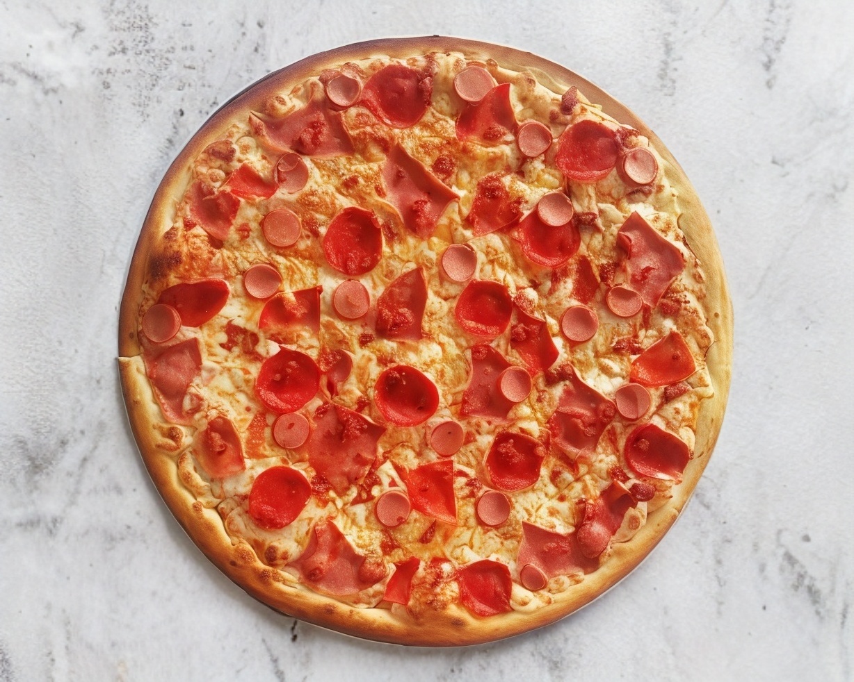 6 pulgadas 100 grs de masa 100 grs de queso 10 grs de jamón 20 grs salchicha