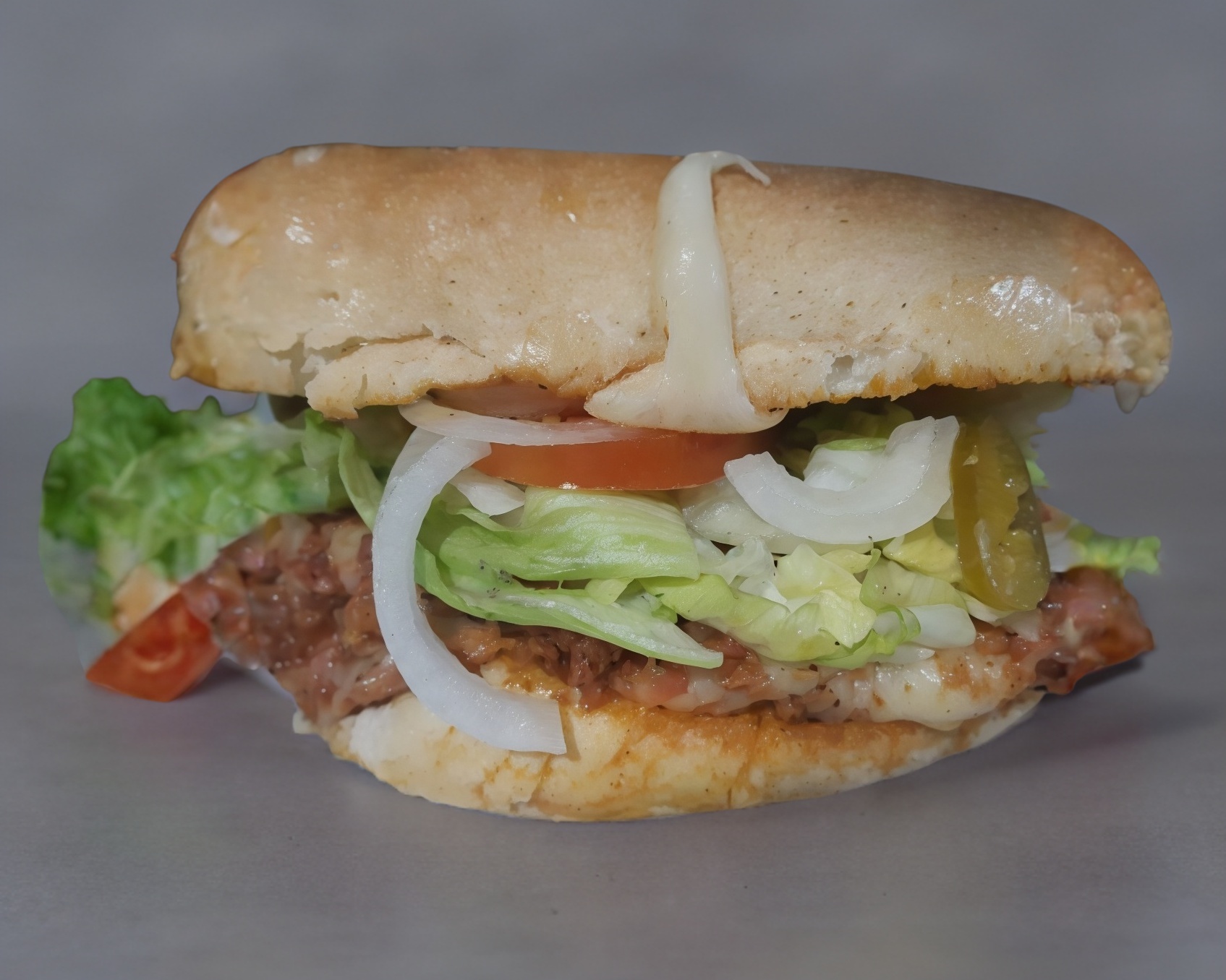 Doble carne de res, jamón, queso amarillo, queso blanco y verdura.