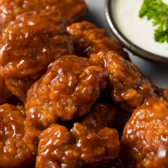 Orden 250 g de boneless con guarnición de 150 g de papas a la francesa con salsa a elegir BBQ, búfalo, habanero o naturales.