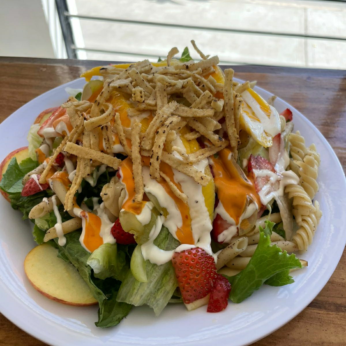 Pasta, mix de lechuga, manzana, fresa, uva y mango: ¡la combinación más original y deliciosa para sorprenderte a cada bocado!
