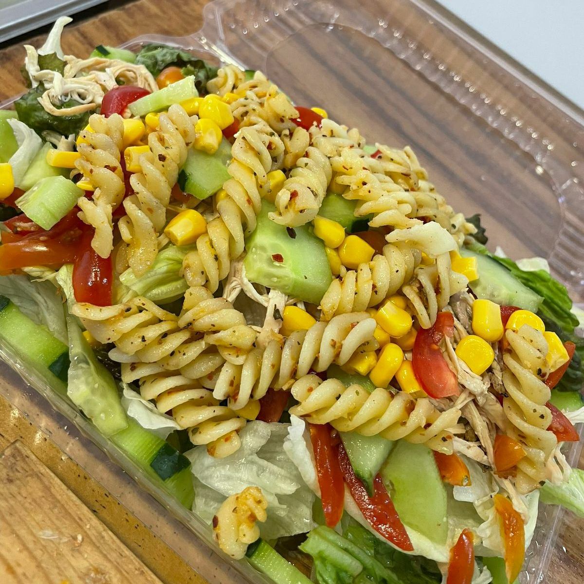 Pollo teriyaki, mix de lechugas, queso panela, elote, pepino y jitomate cherry: ¡la clásica que nunca falla con el punch de sabor que tanto te gusta!