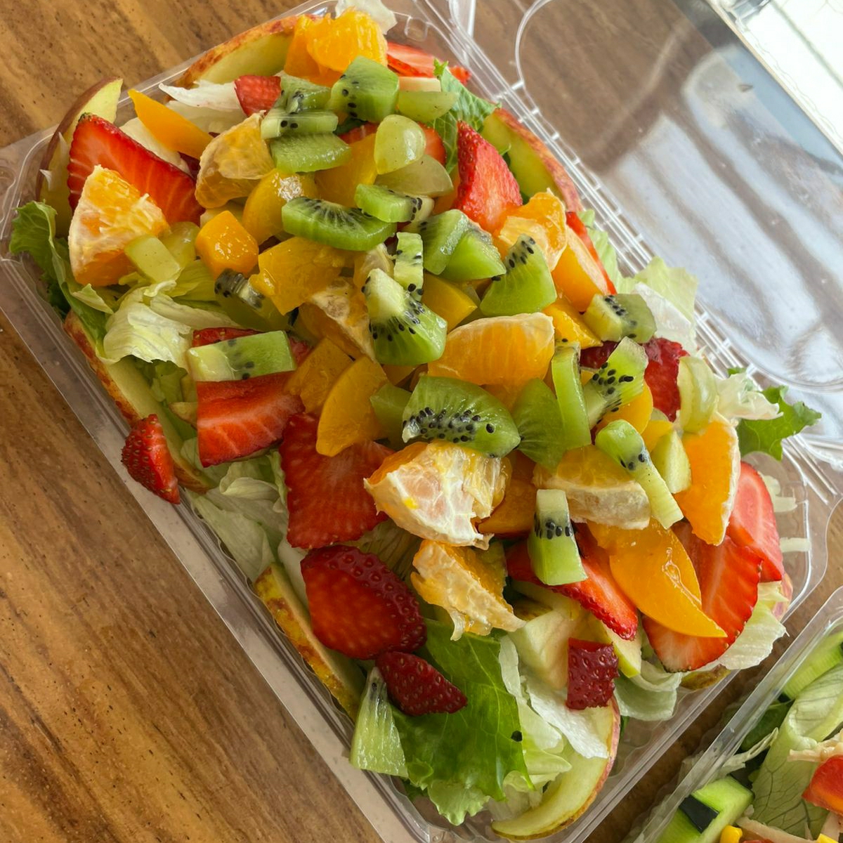 Mix de lechuga, kiwi, fresa, manzana, mango, uva, amaranto, coco rayado y muesli: ¡el boost de energía y vitaminas que necesitas, naturalmente delicioso!