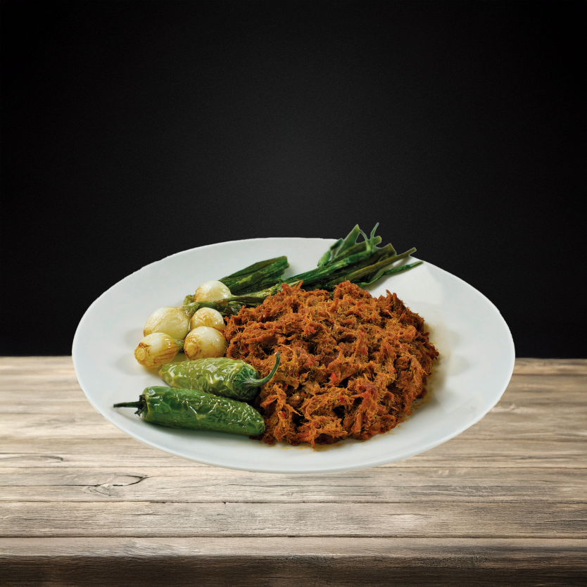 Chilorio ración individual. incluye 1 salsa tradicional 50 ml.