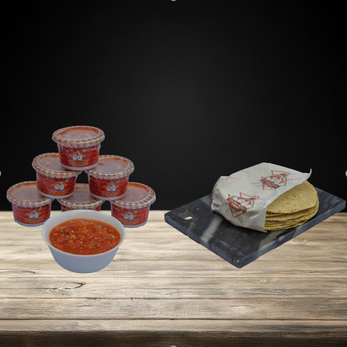 Salsa de la casa 50 ml y tortillas de maíz (10 pzas).